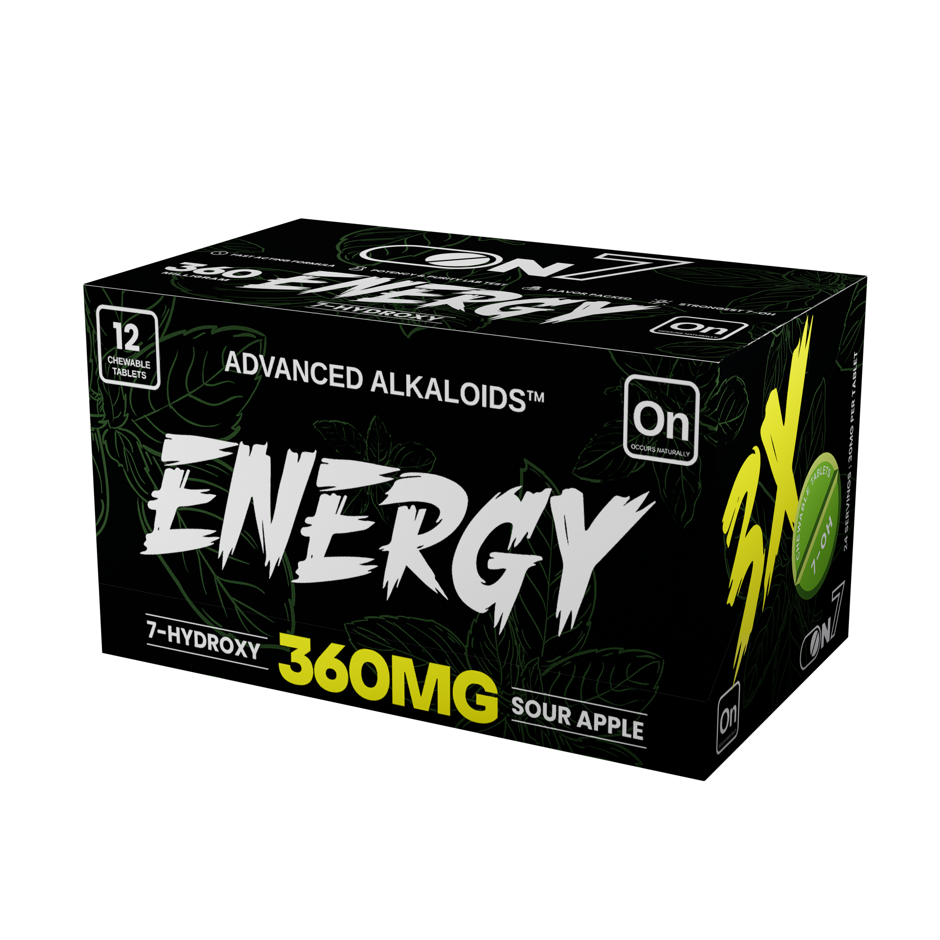 Fuel focus and stamina with On7 Energy 360MG Tablets—crafted with 7-Hydroxymitragynine for clean, long-lasting energy. 12-count blister packs, 24 servings each, 10 per display box.